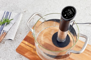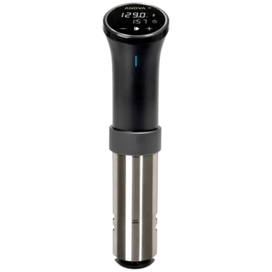 Precision® Cooker 3.0 er oppgradert til 1100 watt effekt, og til å bruke dobbeltbånds WiFi for forbedret tilkobling. En berøringsskjerm med to linjer lar deg raskt se tid og temperatur på samme skjerm og manuelt kontrollere sirkulatoren direkte fra skjermen.