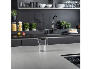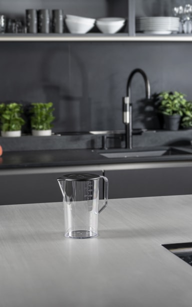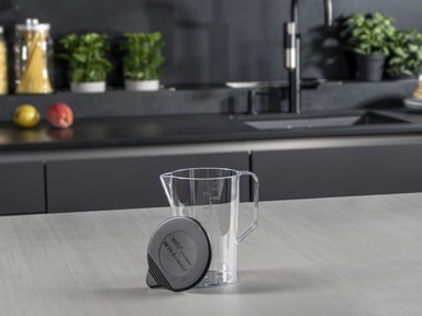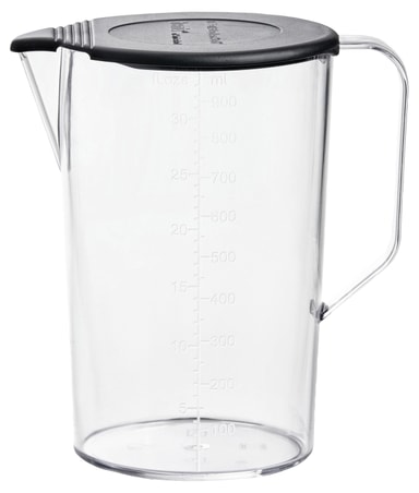 bamix®-miksekanne med lokk, 1000 ml. Formen er designer for bruk sammen med en bamix®-stavmikser. Materialet er støtsikkert, ripesikkert og tåler varme opptil 150 grader. Kan brukes i fryseren.