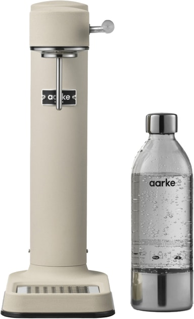Nyt friskt og sprudlende vann med Aarke Carbonator III kullsyremaskin AAC3-Sand. Den slanke enheten med ramme i rustfritt stål er kompatibel med standard CO2-flasker. Den leveres også med en 1-liters PET-flaske som enkelt kan skrus inn i maskinen takket være Easy Twist-Lock-systemet.