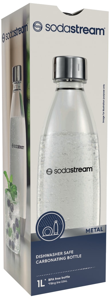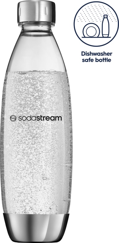 BPA-frie SodaStream Fuse DWS kullsyreflaske 1741199770 er klar til å oppbevare den forfriskende hjemmelagde brusen din i mange år fremover, med en bunn i rustfritt stål og en hermetisk lukket kork som sikrer at den er holdbar og tåler oppvaskmaskin. Den gjenbrukbare flasken har en levetid på 4 år og er kompatibel med alle SodaStream-brusmaskiner bortsett fra Crystal- og Jet-modellene.