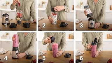 Spar tid ved å blande smoothies direkte i ToGo-flasken uten trakt eller adapter. Med SafeLock lekkasjebeskyttelse - en unik sikkerhetsmekanisme som motvirker lekkasjer og uhell - kan du blande uten bekymringer. I tillegg er ToGo-flaskens lokk også lekkasjesikkert.