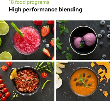 Blenderens innovative teknologi drives av 1600 watt med premium kraft, som grundig blender selv de hardeste ingerdienser til din ønskede konsistens og sikrer at hver rett blir tilbredt etter ditt ønske. Nyt også opp til 45 000 rpm motorhastighet til blender-resultater av høy kvalitet – med mindre oppskjæring på forhånd.