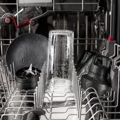 Beholderen kan trygt vaskes i den nederste kurven i oppvaskmaskinen, mens reiselokket bør plasseres i den øverste kurven.