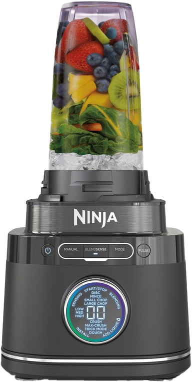 Ninja Detect Power Pro blender TB401EU på 1200 watt er designet for å forenkle måltidsforberedelsen. Den inkluderer en 2 liters kanne, en 1,8 liters prosessorskål og en 680 ml kopp, og håndterer blanding, hakking, skjæring og deiglaging med letthet.Les mer om produktet