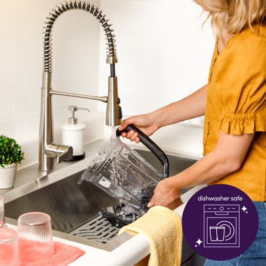 Den 1,8-liter store blendekannen er perfekt for familiemåltider eller matlaging i større mengder. Den inkluderer også en 7-kopps matprosessorbeholder for hakking, skjæring og riving av større mengder.