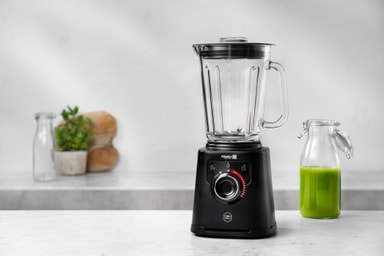 Mikseren kommer med en 1,5-liters glassbeholder til kalde drikker og varme supper.