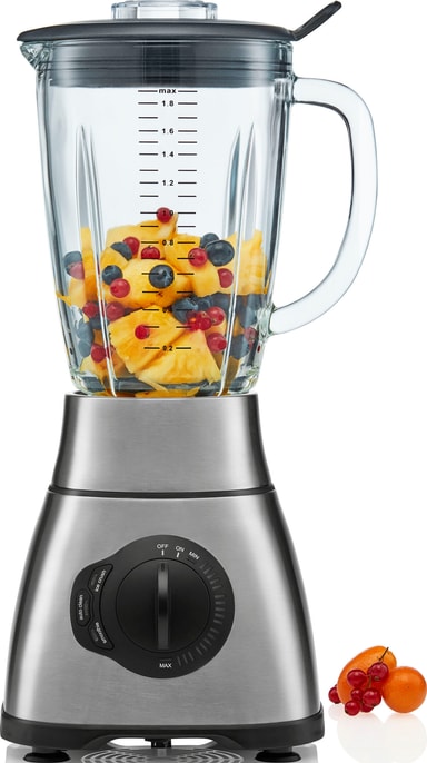 Takket være en kraft på 1800 Watt kan denne blenderen knuse is, grønnsaker, frukt og nøtter til smoothiene dine.