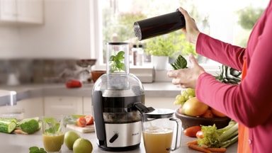 Med Philips Viva Collection Juicer kan du helle deg et glass med ferskpresset juice hver eneste morgen. Den er både enkel å bruke og rengjøre, og lar deg raskt lage opptil 2 liter juice av dine favorittfrukter og grønnsaker.Les mer om produktet