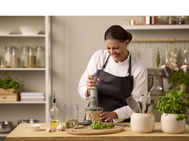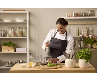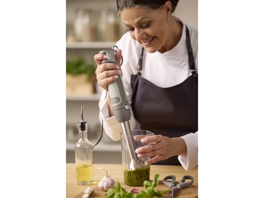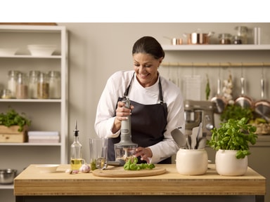 Stavmiksersett til både små og store kjøkkenoppgaver. Stavmikseren har trinnløs hastighetsjustering, slik at du enkelt kan styre tempoet med én knappLes mer om produktet