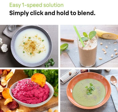Med 450 watt kan du enkelt tilberede smoothies, desserter eller sauser med ett enkelt tastetrykk.