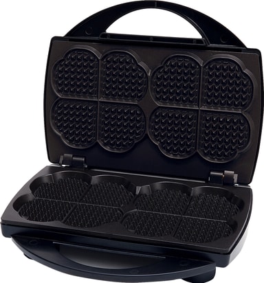 Lag to hele vafler eller åtte mini-vaffelhjerter med Åviken Nobless vaffeljern 909.0 på 1600 W. Den har tykke aluminiumsplater og et keramisk non-stick belegg for enkel rengjøring og jevn steking.Les mer om produktet