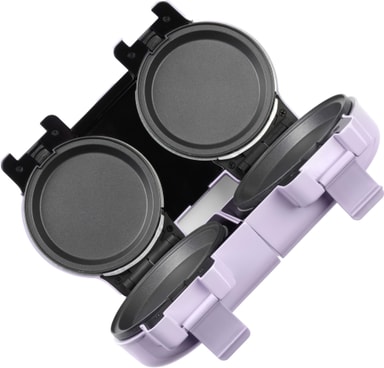 Apparatet kommer med 4 vaffelplater og 4 snackplater, slik at du kan veksle mellom ulike godbiter. Hver plate har en diameter på 11,8 cm, ideell for å lage snacks eller vafler i individuelle størrelser.