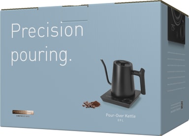 F&B vannkokeren har en elegant gåsehals-design som muliggjør presis, kontrollert helling, ideell for pour-over kaffe eller te. Kroppen i rustfritt stål gir holdbarhet og et moderne utseende, mens det dobbeltlags lokket både isolerer og gir sikkerhet under håndtering.
