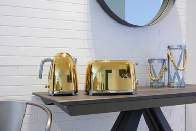 Det italienske merket Smeg er verdenskjent for sitt utvalg av husholdningsapparater som kombinerer retrodesign med banebrytende teknologi. Denne vannkokeren er perfekt for et kjøkken med 50-tallsstil, men den passer også inn i et moderne interiør som en interessant kontrast.