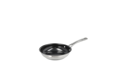 Stekepanne av rustfritt stål med sandwichbunn, altså en aluminiumskjerne omgitt av rustfritt stål, der det ytterste laget er magnetiskLes mer om produktet