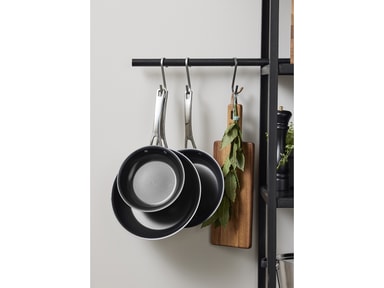 Stekepanne av rustfritt stål med sandwichbunn, altså en aluminiumskjerne omgitt av rustfritt stål, der det ytterste laget er magnetisk. Varmen fordeles og opprettholdes jevnt og effektivt, og i tillegg har pannen tolags keramisk belegg med non-stick-funksjon. Kan brukes på alle varmekilder, tåler opptil 220 ℃ i stekeovn og kan vaskes i oppvaskmaskin. Tåler alle typer redskaper, og er 20 cm i diameter. Vekt 670 g. Serien er oppkalt etter Tareq Taylors datter Ellen. Det keramiske belegget er valgt for å unngå fluorstoffer, og for å få et mer slitesterkt belegg enn et tradisjonelt PTFE-belegg. Samtidig har keramiske belegg gode non-stick-egenskaper.Den kjente svenske kokken Tareq Taylor har utviklet en rekke moderne kjøkkenserier som gir hele familien bedre måltidsopplevelser. Tareq Taylor er lidenskapelig opptatt av matlaging, økologi og kultur og brenner for å lage mat fra bunnen av ved hjelp av 100 prosent naturlige råvarer. Mange av produktene i serien er laget av materialer som kan gjenbrukes, for eksempel stål, aluminium, tre og glass, for å spare på verdens ressurser og ta bedre vare på miljøet.