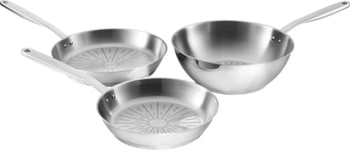 Denne stekepannen er laget av ubehandlet rustfritt stål som gir jevn varmefordeling, slik at rettene dine blir perfekt tilberedt hver gang.