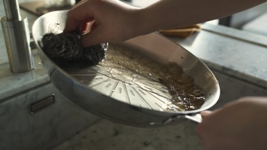 Håndtaket i rustfritt stål tåler ovnstemperaturer opp til 270°C, slik at du enkelt kan flytte pannen fra kokeplate til ovn uten å bytte kokekar.