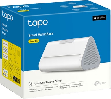 TP-Link Tapo H500 Smart HomeBase sikkerhetshub gir forbedret kontroll og tilkobling for Tapo-sikkerhetsenhetene dine. Med avanserte funksjoner som ansiktsgjenkjenning og intelligent deteksjon sørger denne huben for at hjemmet ditt forblir sikkert, samtidig som den tilbyr sømløs integrering med Tapo-økosystemet og Matter-støttede enheter.