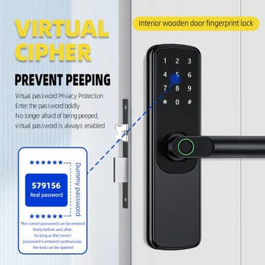 Allsidige tilgangsmetoder: Denne smarte dørlåsen tilbyr allsidige tilgangsalternativer, inkludert APP-kontroll, passordinntasting, kortlesing og tradisjonell nøkkeladgang. Dette sikrer praktisk adgang for ulike brukere og situasjoner. APP-tilkoblingen gir mulighet for fjernlåsing og administrasjon, noe som gir økt sikkerhet og kontroll over tilgangen til hjemmet eller kontoret ditt. Ideell for familier, utleieboliger eller bedrifter som trenger fleksible adgangsløsninger. Integreringen av flere metoder sikrer at du aldri blir låst ute, selv om du glemmer nøkkelen eller passordet ditt. Denne smarte låsen er kompatibel med ulike dørtyper og tilbyr en sømløs blanding av sikkerhet og bekvemmelighet.