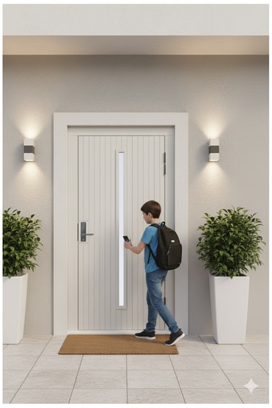 Lås og lås opp dørene dine ved å velge den måten som passer deg best. Du kan velge en PIN-kode eller utstede RFID-brikker til familien din. Hvis det skulle oppstå problemer på grunn av strømbrudd, kan du alltid åpne og låse døren med en tradisjonell nøkkel. Når den er koblet til Heimgard Hub, kan du også bruke mobiltelefonen din.