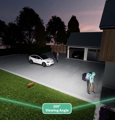 Med et 160° diagonalt synsfelt dekker kameraet større områder, reduserer blindsoner og gir en komplett oversikt over eiendommen din fra ett enkelt punkt.