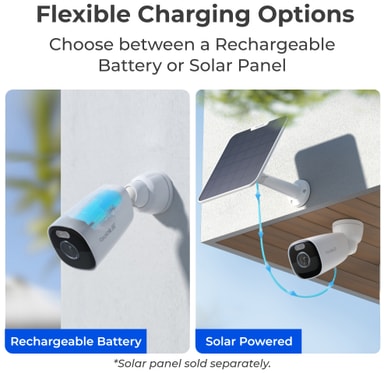 Overvåk omgivelsene uten behov for kabler da dette kameraet drives av et oppladbart batteri med opptil 4 måneders batterilevetid. Du kan også koble til et solcellepanel for nærmest ubegrenset strømforsyning. Solcellepanelet selges separat.