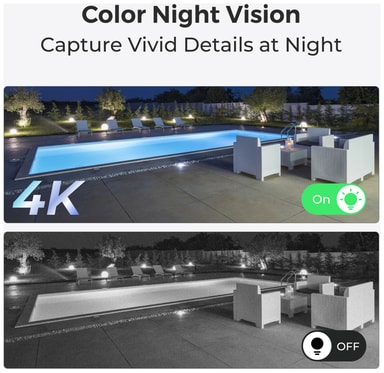 4K videoopptakskvaliteten sikrer skarpe og detaljerte opptak, mens infrarødt nattsyn muliggjør detaljerte opptak i dårlige lysforhold.