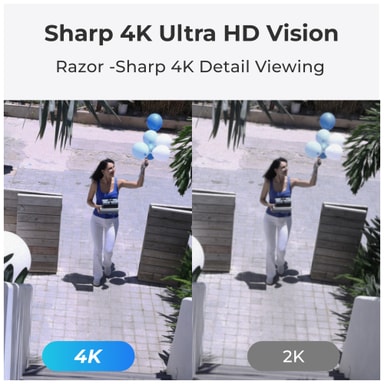 4K videoopptakskvaliteten sikrer skarpe og detaljerte opptak, mens infrarødt nattsyn muliggjør detaljerte opptak i dårlige lysforhold.