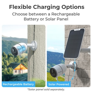 Go Plus gir deg fleksibilitet både når det gjelder lagringsplass og lading. Du kan bruke et microSD-kort med opptil 128 GB lagringsplass, koble den til en skylagringsplass eller bruke Reolink FTP til å lagre opptakene dine uten månedlige avgifter. For lading kan du velge mellom oppladbart batteri og solenergi.