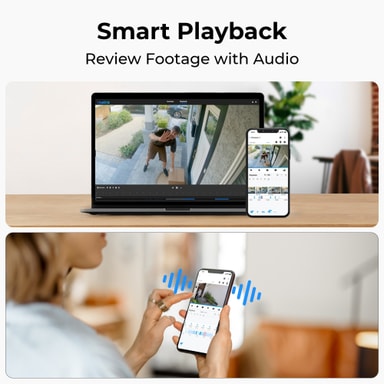 Avansert deteksjonsteknologi reduserer betydelig forekomsten av falske alarmer ved å nøyaktig identifisere mennesker, kjøretøy og dyrebevegelser og sende deg presise varsler. Du kan gjennomgå lagret opptak med lyd takket være smart avspillingsfunksjon.