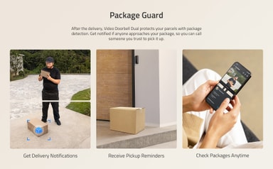 Delivery Guard-teknologien skanner etter pakker og varsler deg umiddelbart når pakken din ankommer og sender deg påminnelser om henting slik at den aldri blir forlatt. Dessuten vil du få varsler når noen nærmer seg pakken din, slik at du kan svare umiddelbart.