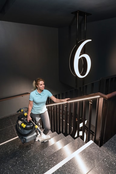 Kärcher Puzzi 8/1 tepperenser 1.100-240.0 er en kraftig tepperenser med spray-ekstraksjon designet for rengjøring av tekstiloverflater og møbeltrekk. Den har et ergonomisk design, en 2-i-1-beholder og mye mer.Les mer om produktet
