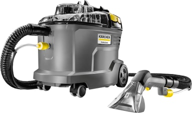Kärcher Puzzi 8/1 tepperenser 1.100-240.0 er en kraftig tepperenser med spray-ekstraksjon designet for rengjøring av tekstiloverflater og møbeltrekk. Den har et robust, slitesterkt og ergonomisk design for effektiv rengjøring. 2-i-1-beholderen bidrar til effektiv flekkfjerning. Hvis du trenger å fjerne gjenstridig smuss, fett og lukt, har dette apparatet det du trenger.