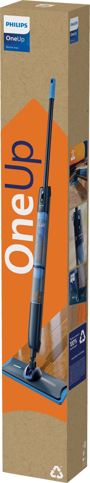 Det er på tide med en rengjøringsrevolusjon! Philips OneUp suger stille opp skittent vann og pumper ut rent vann. Gulvene blir dobbelt så rene, og moppingen går dobbelt så raskt sammenlignet med en tradisjonell mopp. Se om du klarer å gå tilbake til en vanlig mopp etter å ha testet OneUp!