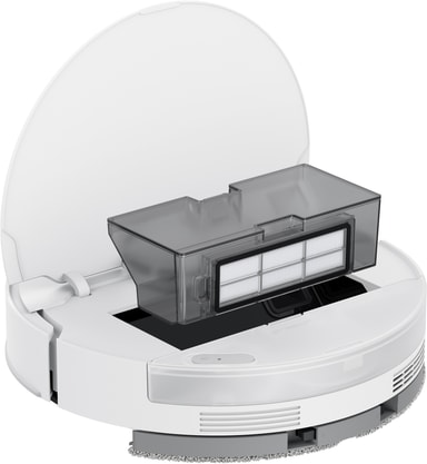 Etter rengjøring returnerer roboten automatisk til dokkingstasjonen, der støvbeholderen tømmes i en større oppbevaringspose. Dette holder hendene rene, reduserer vedlikehold og muliggjør flere rengjøringssykluser før tømming er nødvendig.