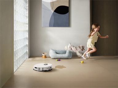 Roboten har et elegant design med lav profil som enkelt når under møbler, og sammen med en avansert dokkingstasjon gir den et helautomatisk rengjøringsoppsett.