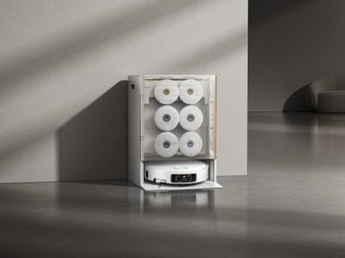 Dokkingstasjonen vasker og tørker moppeputer automatisk, holder dem hygieniske og klare for neste rengjøring.