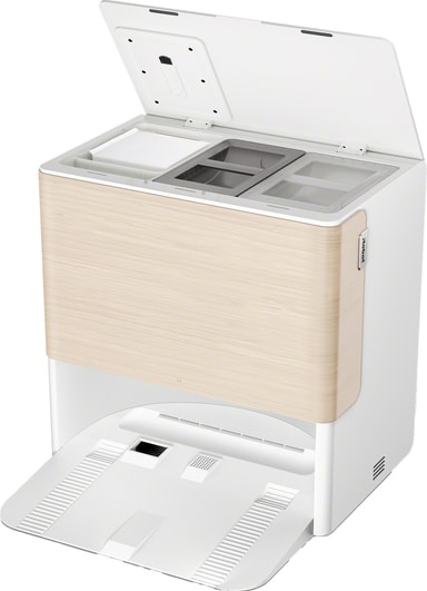 AutoWash-dokkingstasjonen tømmer ikke bare støv, men varmevasker og tørker også mopperullen og fyller på vanntanken, noe som sikrer en ren mopp hver gang uten manuell innsats.