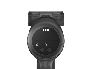 Støvsugeren drives av et 2500 mAh litium-ion-batteri som gir 50 minutters brukstid når den er fulladet. Apparatet leveres med et veggmontert ladestativ for praktisk oppbevaring og lading.