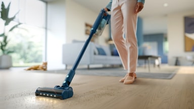 Philips 5000 Series trådløs støvsuger XC5041/01 har Aqua-modus for våte flekker og et TriActive LED-munnstykke som fungerer på alle overflater. Den kan brukes i opptil 60 minutter i Eco-modus for uavbrutt rengjøring.Les mer om produktet