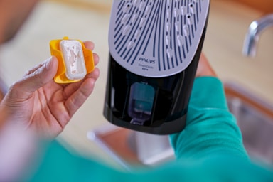 Denne funksjonen sikrer at mindre kalk bygger seg opp i strykejernet, gir enklere rengjøring, og en lengre levetid til apparatet.