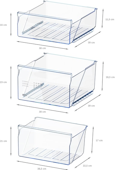 • 3 transparente fryseskuffer