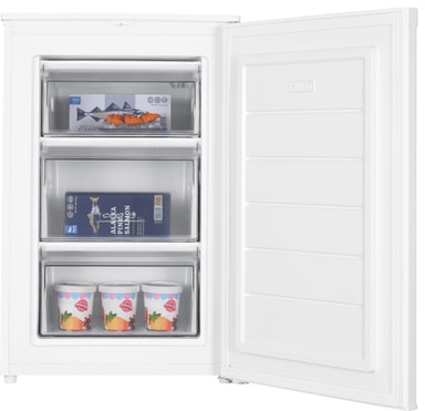 Denne fryseren har kapasitet på 87 l som komfortabelt lar deg oppbevare nødvendige frysevarer. Den har tre romslige skuffer.