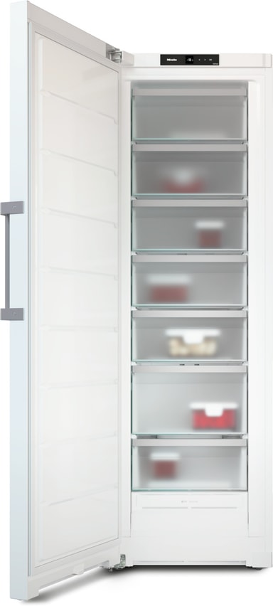 Miele Upright Freezer FNS 4382 DN: En elegant, frittstående enhet med NoFrost-teknologi, EasyHandle og Wi-Fi-tilkobling for uanstrengt side-ved-side-oppsett.Les mer om produktet