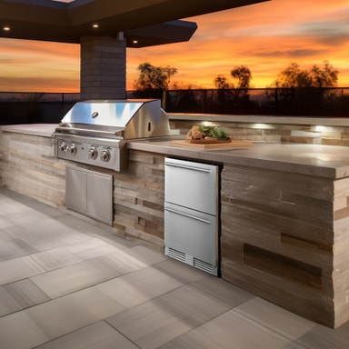 Frigelux utendørs skuffekjøleskap RE2T136A er en moderne løsning til utendørskjøkken, miniatyr-puber, eller som ekstra oppbevaring på kjøkkenet ditt. Dette stilrene kjøleskapet har to romslige skuffer med en kapasitet på 77 liter, justerbar temperatur, og klar LED-belysning. Videre, det kan brukes som en innebygd eller frittstående enhet.