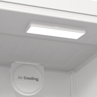 Sterk og energieffektiv LED-belysning gir flott oversikt over hele innsiden. I motsetning til andre former for belysning, genererer ikke LED-lys varme og varer i hele apparatets levetid.