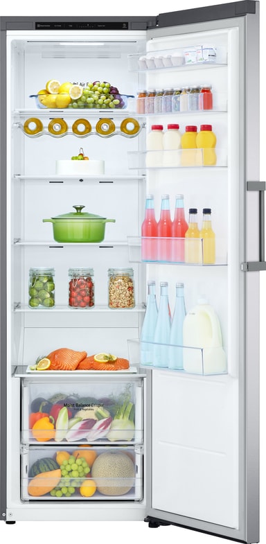 Bevar matens ferskhet og smak over lang tid med LG kjøleskap GLT51PZGSZ, som bruker smart DoorCooling-teknologi for å redusere tap av kaldluft og en Linear inverter-kompressor for energieffektiv drift. Det frittstående kjøleskapet kommer med et romslig interiørvolum på 386 liter.