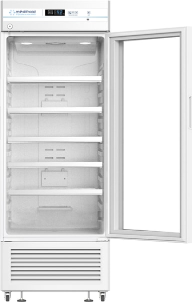 Medifroid medisinsk kjøleskap PHAR300 gir presis +2°C til+8°C oppbevaring med en elektronisk termostat, avanserte alarmer, 48 timers batteri-backup, og DNI 1377-standard for optimal farmasøytisk trygghet.Les mer om produktet