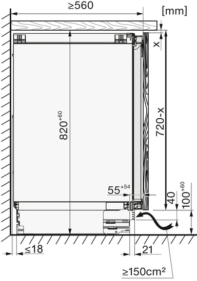 • Krever kjøkkenfronter med en minimumshøyde på 72 cm.